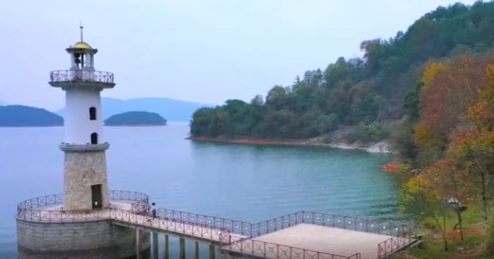 第二站,洲际灯塔。当汽车驶过一个个湖湾,每一个湖湾都能看见千岛湖不一样的美。想要寻找浪漫,你可以把车开去这个湖面上的灯塔。在这里,也可以拍上美美的照片。如果你是和你的另一半一起来玩,那么一定要去这里看一看。和爱的人在这里许下心愿后,再出发驶向红叶湾。