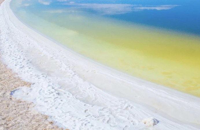 盐湖上有长32公里的盐桥,是一座浮在卤水上的万丈盐桥,青藏铁路有一部分也修筑在上面;