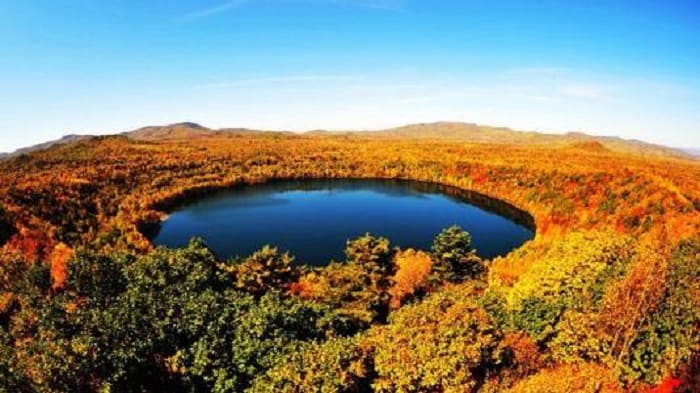 第一站导航搜索四海龙湾,即可到达。在这里强调一下,直接搜索四海龙湾就可以,这个景区是不收费的。这里是一个火山口,虽然没有天池那么壮观,但是这里不需要买门票,车还可以开进来。而且林间小路真的很美,还可以通过一条小路直接下到火山口的水边,在这里提醒大家小路很陡,请大家注意安全。而且如果你早上5:30左右到达,还有可能看到火山口布满云海的画面。总体来说四海龙湾,无论是在地上,还是在天上看的都很美。