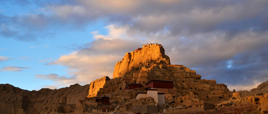 古格盛产黄金白银,在托林寺、札不让、皮央东嘎都发现过一种用金银汁书写的经书,而且出土的数量极大。这种经书以文书写在一种略呈青蓝色的黑色纸面上,一排用金汁、—排用银汁书写,奢华程度无以复加。 据说最早对这座古城遗址进行考察的是英国人麦克活斯扬。1912年,他从印度沿象泉河溯水而上,来到这里进行考察。此后便有无数的探险家、旅行者、摄影家和艺术家们源源不断地来此探奇访幽。 古格王朝藏尸洞由来: 在古格都城遗址北面六百多米远处的断崖上,有一个闻名世界历史的“干尸洞”。据说这是古格王国灭亡后留下的最后遗迹。关于干尸洞内的尸体,据说是古格与拉达克争战时,古格王朝的国王不忍自己的百姓受累,于是与拉达克人达成城下之盟:同意投降,但不得伤害百姓!但是在古格国王和战士们放下武器之后,背信弃义的拉达克人却将他们全部押解至干尸洞前处以极刑,抛尸于洞内,并把所有被俘的古格子民掠往拉达克,将古格残酷灭国。 当然关于干尸洞在历史上也有另外一种解释,考古学者在干尸洞内发现的年轻女性的尸体,从考古学与民俗学的角度分析,似乎这又是一种有一定仪礼的葬式。 古格王朝在哪里? TIPS:古格遗址位于扎达以西20公里处,交通不便,位置偏僻。假如不是包车而来,尝试在县城南面的路口等待偶尔经过的军车也可。如果车是去扎不让村的,小村往西1千米就是古格遗址了。