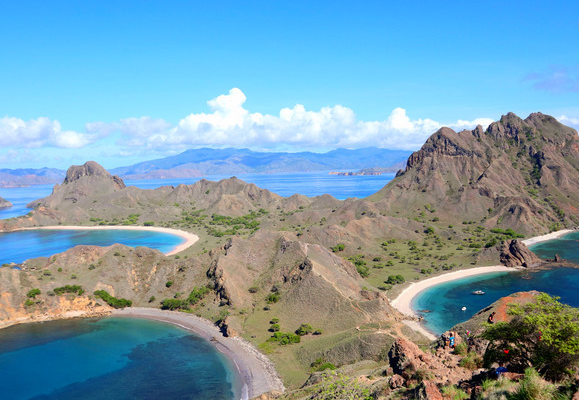 帕达尔岛是国家公园内仅次于科莫多岛、林卡岛的第三大岛屿,在1991年科莫多国家公园被联合国教科文组织评选为世界遗产的53年前,帕达尔岛就已被列为自然保护区。七千万年前的火山喷发造就了这座岛屿崎岖的地貌,厚密的植被如油画颜料一般沿着山峦涂抹,将岛屿的嶙峋填得延绵而温婉,欲滴的浓绿顺着山坡的四面一泻而下,在与海面的汇合处形成白色、金色、青色和粉色四种色彩的沙滩。