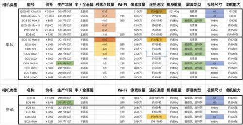 佳能主流相机关键参数盘点图