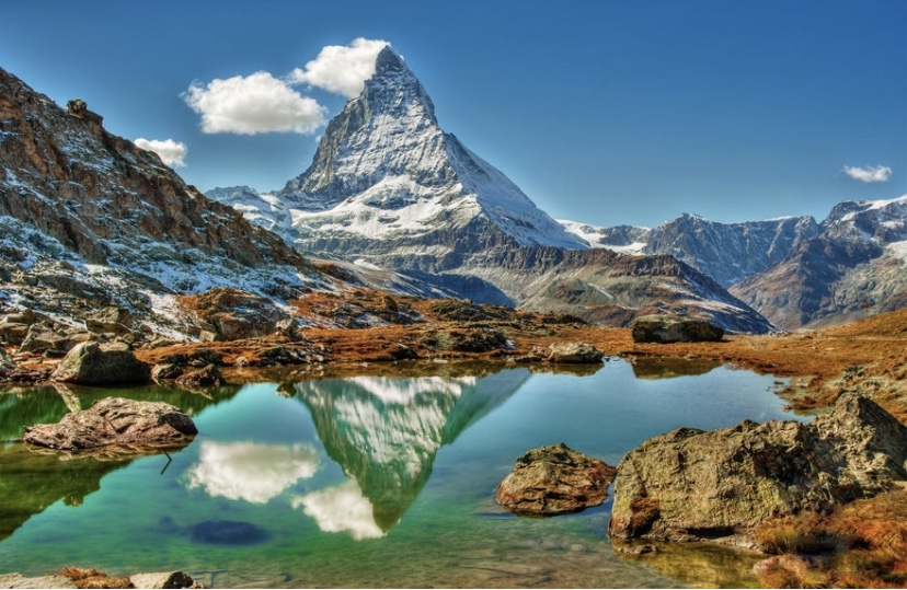 经典三角锥造型的马特洪峰是阿尔卑斯山最最标志性的山峰,是瑞士人引以为傲的象征,也被看作是瑞士的标志。有“欧洲山王”之称,是被世人拍摄入境次数最多的一座山峰。