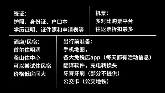 最后给大家列了个韩国自由行详细清单,收藏起来,说不定哪天会用到。
