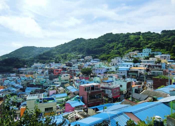 甘川文化村是一个色彩斑斓的小村落。像是韩版的圣托里尼,各种涂鸦壁画、艺术小店等,拍照拍视频都特别上镜。
