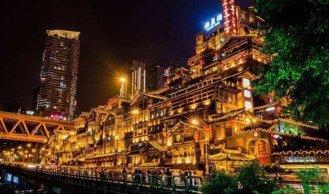 洪崖洞可以白天和晚上各去一次,有着鲜明的对比。白天的洪崖洞,看着很普通,甚至说看起来还有一点破旧;而夜晚的洪崖洞,一排排吊脚楼灯火辉煌,一片繁荣昌盛之景。