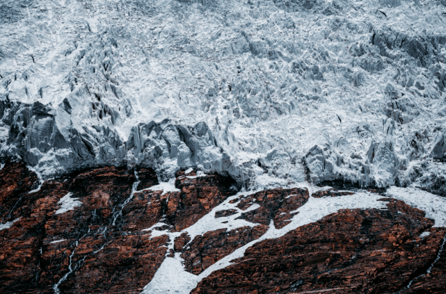 巨大的冰川从山顶云雾飘缈处,一直延伸到离公路只有几百米的路边,冰舌倾泻而下,蔚为壮观