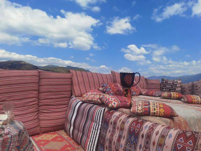 白马除了视野超棒,整个古城和玉龙雪山尽收眼底,民宿里还有一块拍照的地方,是民宿专门搭建的一个景,这里推荐大家一定要住全景大床房,民族风露台和精致白床,有两个露台可以拍