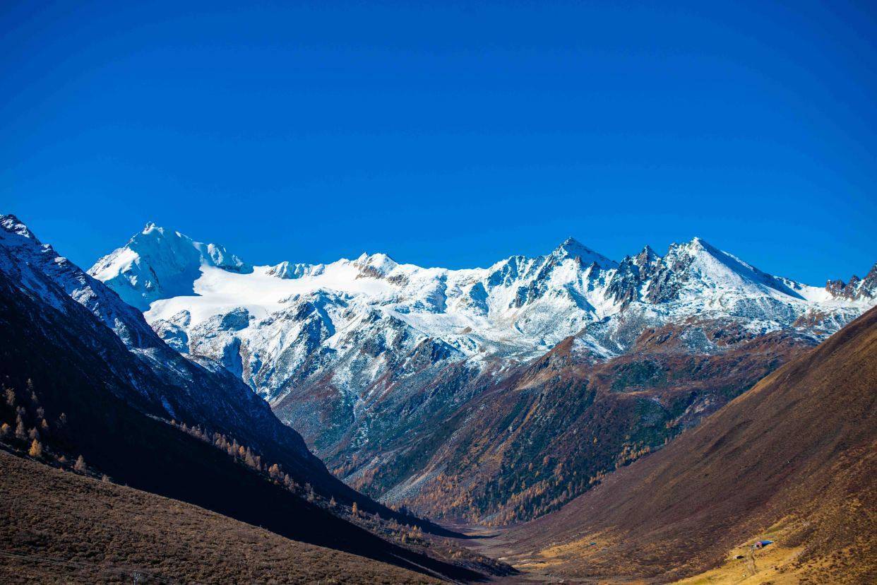 新都桥是色彩的王国,漫山遍野的金黄。金黄的树叶,银白的雪山,湛蓝的天空,光与影的变换将会赋予这些颜色新的意义。清晨站在村头的田埂或是山坡上观景最佳,在逆光,侧光中会看见清晨的暖光恰如其分的打在村舍或是挺拔的柏杨上,山、树都藏在薄薄雾霭之中,朦胧而又清新,深深吸一口秋日的空气,甘甜从鼻翼润泽入心。