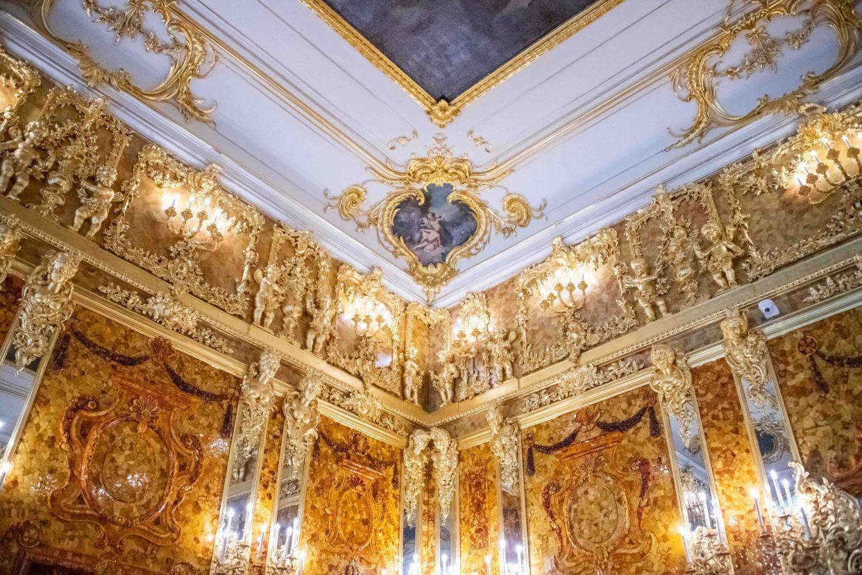 叶卡捷琳娜宫内最为著名最为传奇的便是琥珀屋。在儿时,书本上曾有一篇文章就是关于琥珀屋的。而来到叶卡捷琳娜宫后,便能亲眼见到这个旷世奇珍了。琥珀屋被誉为世界八大奇迹,其之奢华之珍贵不言而喻。