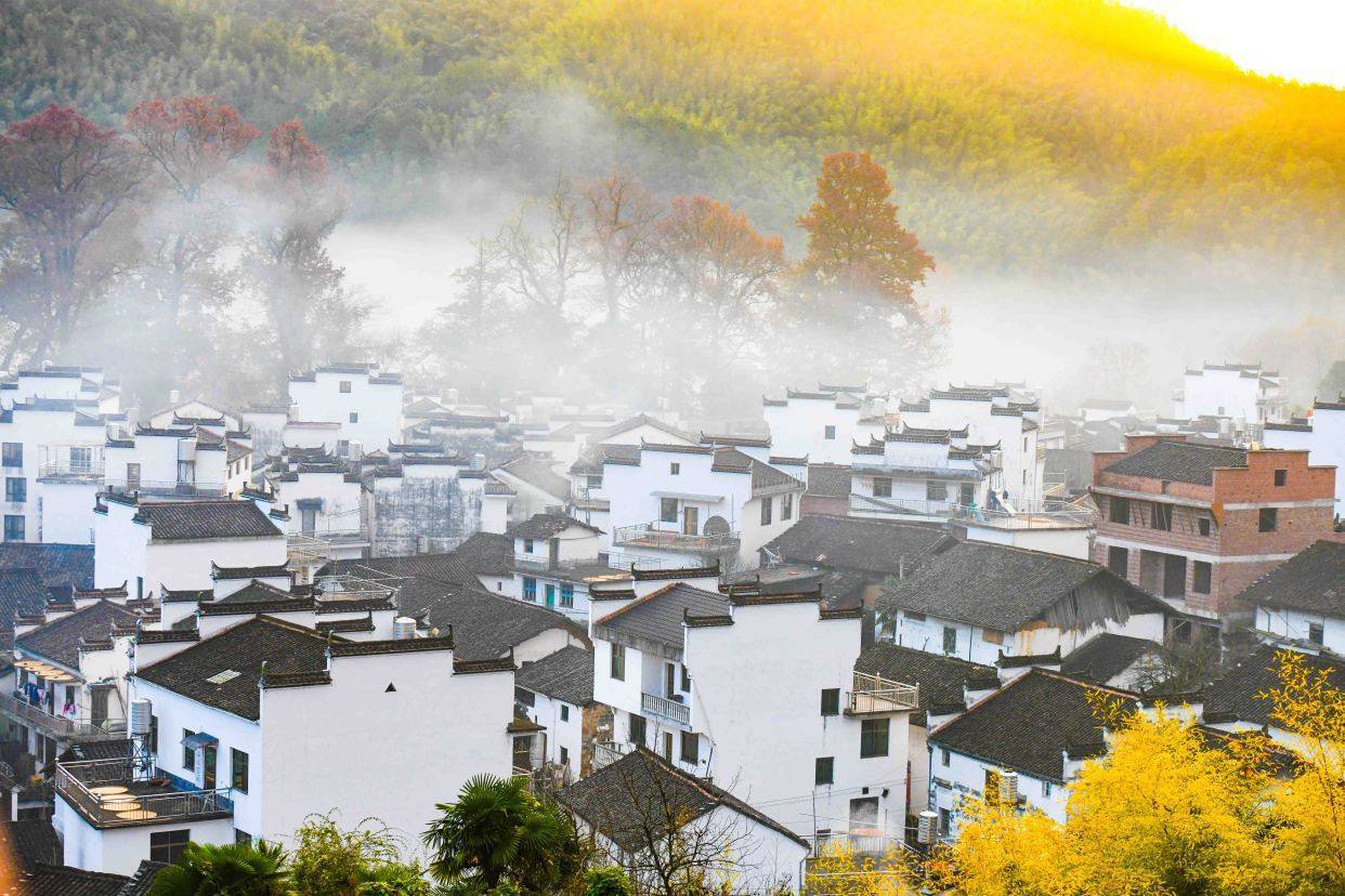 石城分布有两个村庄:程村与戴村,被青石板古驿道贯穿整个村庄的叫戴村,而那粉墙黛瓦的古民居在烟雾中若隐若现的是程村。两村之间隔着一个小山坡,村后都有古枫点缀,但又各具特色。石城程村三面都有古枫树环抱,一面是石灰岩小山坡,早晨的晨雾悬挂在树半腰,加上村庄中的炊烟,如梦如幻,很受摄影爱好者的青睐。石城戴村有条古道可以通往长溪村,徒步13公里左右。