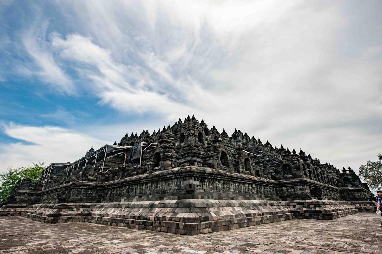 谈论婆罗浮屠,那其中必不可少的一定是婆罗浮屠塔了,这座具有无尽历史价值的圣殿,在联合国的援助下得以重建。一眼望过去,可以看出来整个建筑可以分为三层。底座是由五个同心方台组成,呈角锥体;中间是三个环形平台,呈圆锥体;顶端是佛塔。绕着圆形台有着72座透雕细工的印度塔,内有佛龛,每个佛龛供奉一尊佛像,还有旁边的围栏,都有着十分精美的雕像,似乎在诉说着独属于这里的故事。