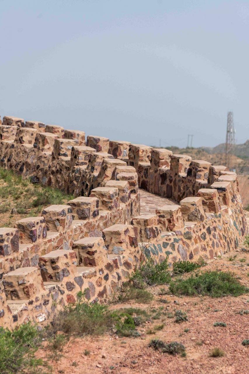 北线长城西起贺兰山北,经惠农、大武口、平罗东至黄河西岸,嘉靖九年(1530年)修筑,古人称之为“山河之交,中通一路”。但这段长城损坏很严重,仅发现了存留的地基。