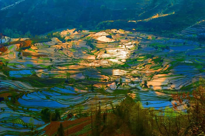 撒玛坝梯田看云海,普者黑看夕阳