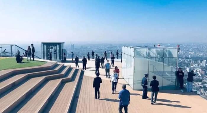 第一、新晋网红圣地,SHIBUYA SKY票价130元,分室内和室外,开放式的天梯真的怎么拍都好看,在这里可以俯瞰东京的每一个地标,甚至是富士山,中间有一大块草坪可以进行拍完。