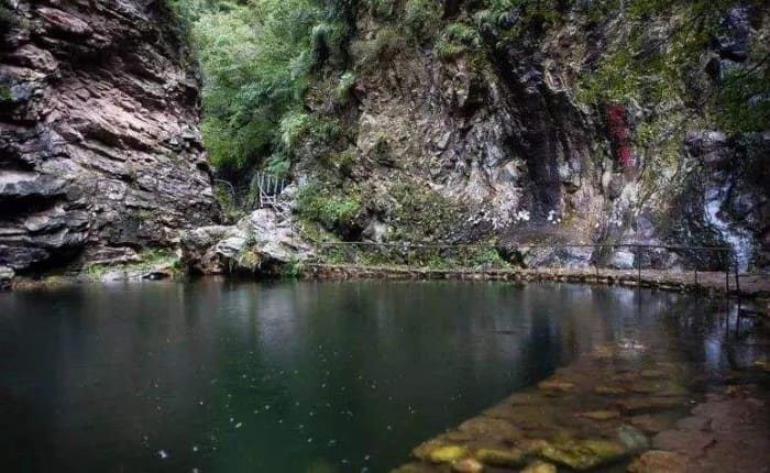 乘坐着竹筏,在竹筏进入九龙潭的一瞬间,仿佛整片小世界都静了下来。“九龙清幽静,丹霞绝壁奇”。这里的每一个视角都藏着最独特的景。这里有着自带浪漫色彩的龙潭鹊桥,走在桥上,独享一份惬意。在倾斜45度的晴龙峡,即使是倾盆大雨,也不用担心被打湿。应龙峡算的上是九龙潭最窄的地方,这里只容得下一排竹筏通过。200米长的水边栈道,走一走停一停,欣赏这里秀丽美景,真有世外桃源般的舒适惬意。