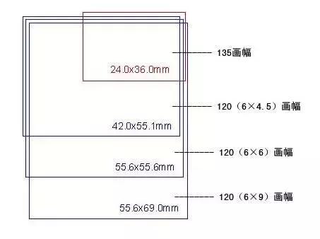 这是几个常见画幅胶片感光面的尺寸对比,在 120 画幅里面的小弟弟 645 ,它的底片面积也是比常规 135 画幅的胶片机大了两倍多,同样带来的细节和宽容度也会更好。带来的结果也是机身和镜头成本会增加很多。