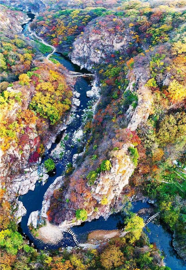 景区逢春夏之交,漫山遍野的杜鹃花,红成花海,令人陶醉;现在到了霜秋之季,满山红叶与山光石景相辉映,艳如彩带,蔚为壮观。