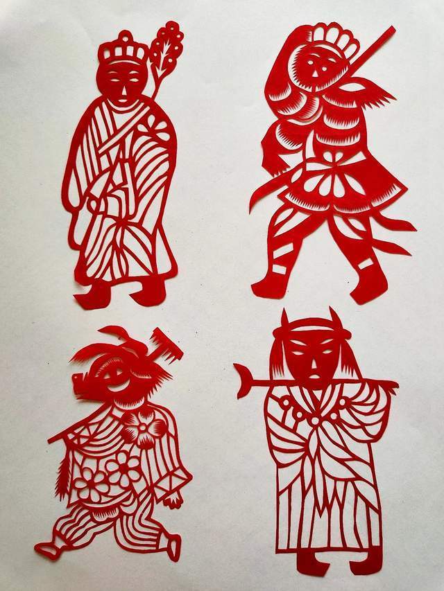 剪纸造型简练,技法高超,用途广泛,表现的图案千姿百态,常以人物、动物、生肖、植物、花卉、神话故事等为题材。