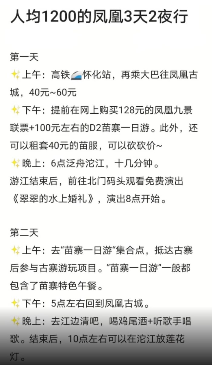送给第一次去凤凰古城旅游的朋友,人均只要1200块。