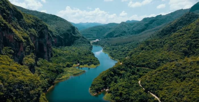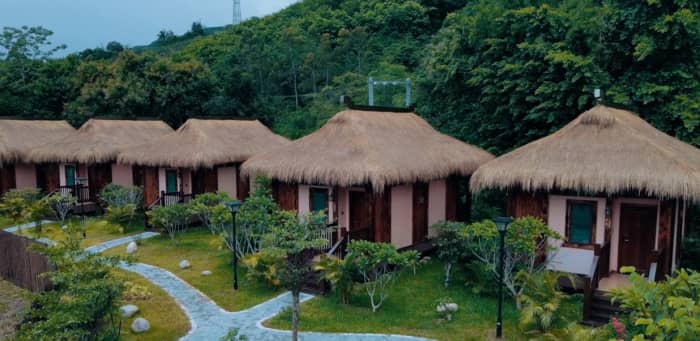崇山峻岭里蜿蜒的河流,像通往一片无人之际,当天晚上我们就住在这片山里的民宿成排的茅草小屋,房间还挺精致,关键是民宿做的菜对于两个成都人来说都很好吃,这里在三亚以西,它的名字叫昌江,日落沙滩、热带雨林,这才是我们心中完整的海南。