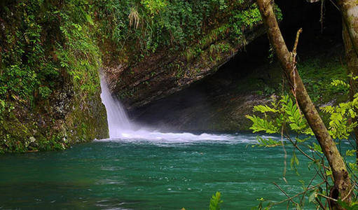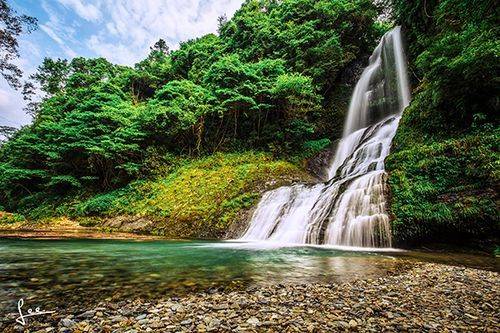 走入打鼓岭,我们能够看得到周边的许多树木,其实生长的不是特别粗壮高大,他们小巧的长在溪流的两边,亦或是悬崖峭壁之上,而在丛林的深处,有一个自天上倾泻而下的一条白色丝绸,这就是当地十分有名的白色瀑布了。这条瀑布在山崖间,经历了三次冲折冲撞之后泻入潭底,使得整个山谷之中,回响着瀑布不绝于耳的声音,因为这个声音,特别像打鼓时发出的声音,所以这个山岭也就被命名为打鼓岭了。