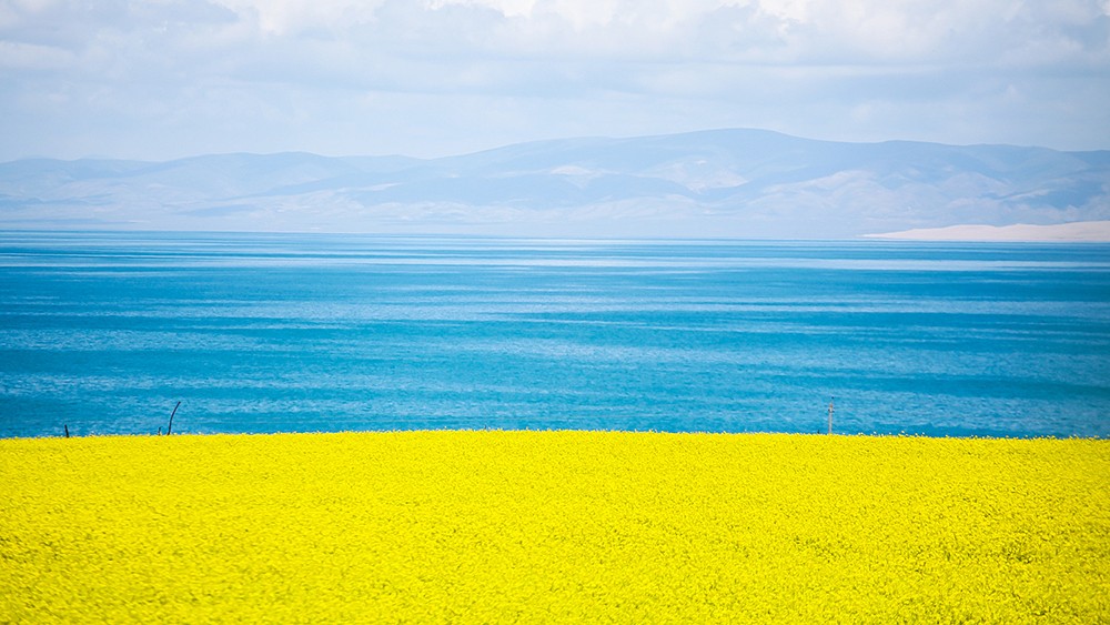 七、八月是去青海的最好时节,最美的时候,环湖千亩油菜花竞相绽放,碧波万顷的湛蓝外围散布着金灿灿的亮黄,高山牧场的野花五彩缤纷,如绸似锦,数不尽的牛羊膘肥体壮,点缀其间。