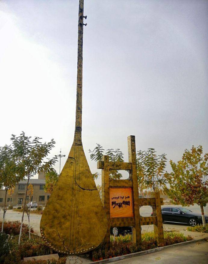 维吾尔民族乐器雕塑是阿克苏老街在路口的标志!
