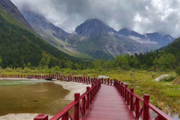 香格里拉镇也日瓦乡,香格里拉镇有两部分,一部分在下面,离景区五公里,但海拔却低了一千米,只有2900米,对于有高反情况的会好很多,另一部分在景区上面,因为景区门口就在镇上,早上走路就可以到景区门口,早上可以多睡一会儿,要注意的是,旺季人多一定要提前预定。