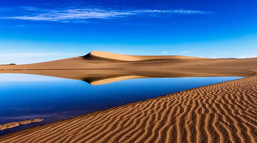 巴丹吉林沙漠迷人之处还在于这个中国最美沙漠拥有140多个碧蓝如宝石的海子,被《中国国家地理》选为“中国最美沙漠“,美在壮丽瑰奇,美在沙中有海。