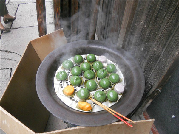 有甜的也有咸的,豆沙阿,猪肉咸菜阿,各种馅料,吃起来糯糯的,和着青草的芳香,真是人间美味呀!
