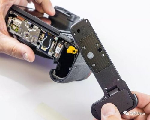 接下来就是相机的关键部分,传感器以及防抖组件。对于现代相机,机身防抖都是竞争的核心功能,专业无反更是如此。这里可以看到几个厚而且坚固的弹簧,他们帮助传感器悬浮在一个完美的位置,以便正确的聚焦。