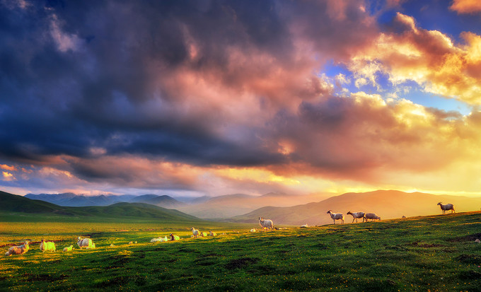 祁连大草原:祁连山靠近国道的大草原平均海拔在3000米左右,作为中国最美的六大草原之一,以其山清水秀风景如画牛羊成群赢得海内外游客的一致好评,在最美丽的7、8月来青海的游客有3天以上的旅行时间一般都会选择来这里看看。