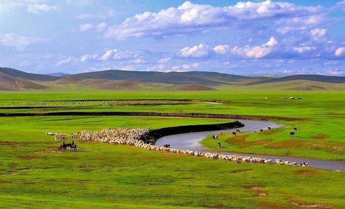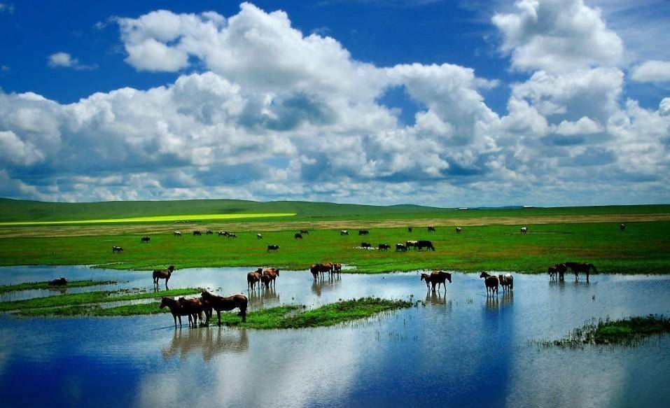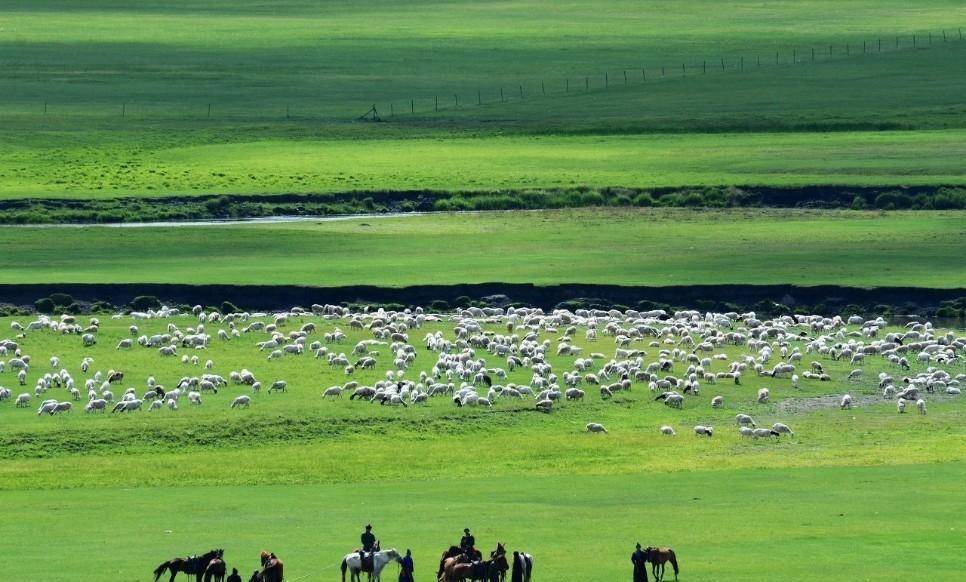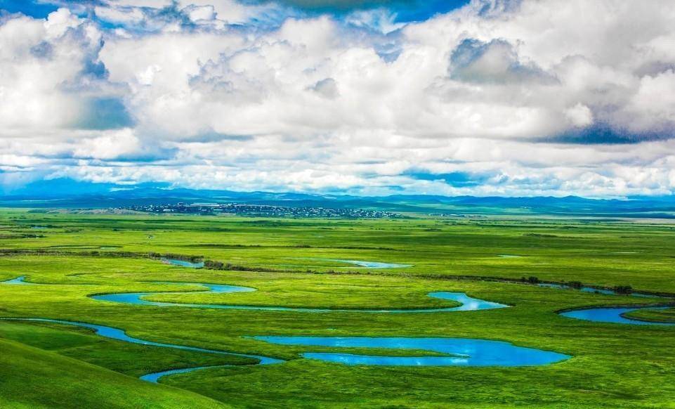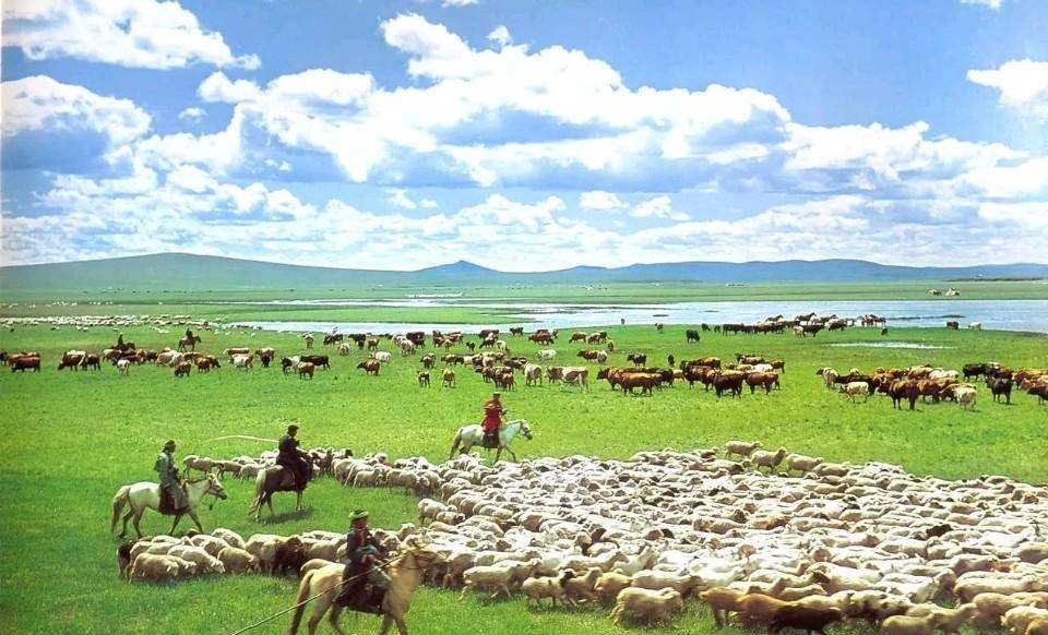 中国目前保存最完好的草原,有“牧草王国”之称,地域辽阔,风光绮丽,水草丰美,三千多条纵横交错的河流,五百多个星罗棋布的湖泊,组成了一副绚丽的画卷。