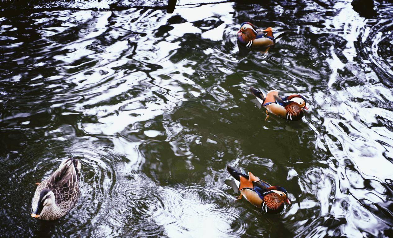 鸳鸯和水鸭,好像不怎么怕冷。还是跟春天来遇见的时候一样精神,窜上窜下,遇到小船划过,还会游过去就着泛起的水花扑腾一番。