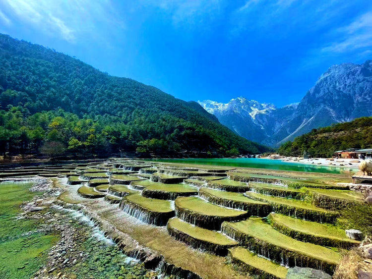 这个地方的名字也非常的美,叫做蓝月谷,起这个名字想必也是因为这里看起来像一轮蓝月吧!这里距离古城并不是特别的远,大概35公里左右,我们驾车的话不到半个小时就可以抵达,总体来说交通还是比较便利的,这个地方名气并不是特别的大,游客也不会很多,所以相对来说比较的安静,也正是因为如此,所以才会给我们带来更好的游玩体验。