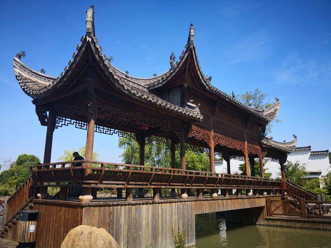 再往里走就能看到小桥流水的景色,这里的桥梁建设的古色古香,从一个岸边连接到了另一个岸边,而且整个连接过程,也是十分的蜿蜒曲折,拥有一定的古典美,据说当地接待游客的大厅,其实是一个进士第宅。