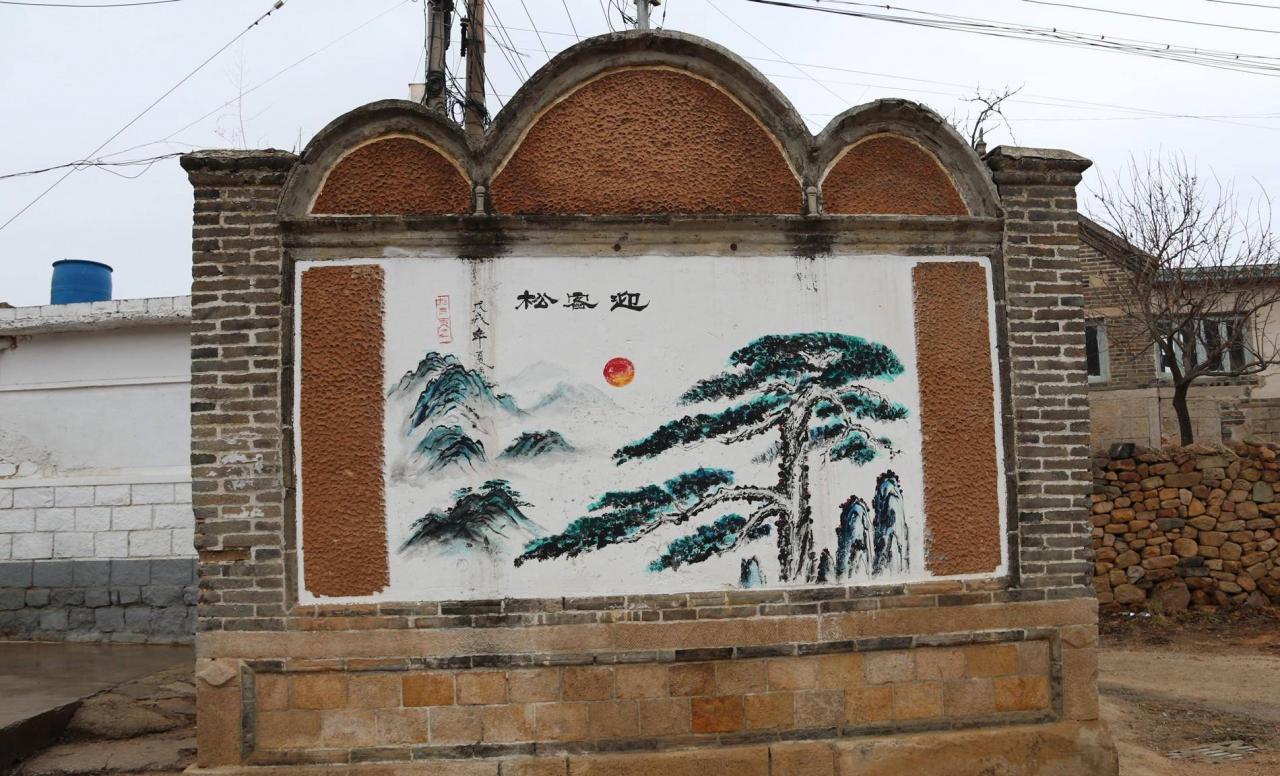 现在照壁上的图案是“迎客松”,时间落款是戊戌年(1958年和2018年都是戊戌年),当时也忘了打听具体是哪一年画的。从新旧程度看起来,2018年的可能性较大。