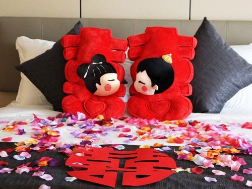 传统婚房布置会直接购买红色系四件套,但现在很多新人可能会考虑到,红色床品也许只在结婚时铺一下,其他时间闲置了很浪费。所以新人们可以选择符合自己审美的普通床品,用其他红色抱枕点缀即可。