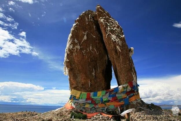 合掌石:也称为父母石及相传它是父亲念青唐古拉山峰和母亲纳木措女神的化身,象征他们忠贞不渝的爱情。此掌为芷传宁玛教派创始人莲花生丈师修行时合掌祈福万物的显像。