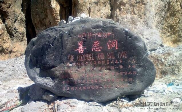善恶洞:藏传佛教认为人无论做善事或恶事,上天是一定能知道的,就像钻善恶洞一样,无论胖、矮、高、瘦只要你行的正走的直便能从此洞中过,反之就应当反省一下自己的过措。善恶洞只是佛祖给世人敲的警钟而已。
