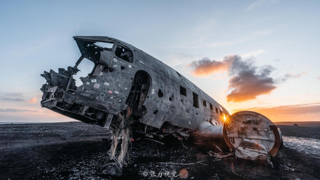 1973年11月24日,一架美国海军飞机,机型为C-47 SkyTrain,又称Dakota,因天气原因导致燃料耗尽,最后迫降坠毁在冰岛南岸广袤的Sólheimasandur黑沙滩上。机上成员幸运地全部生还,不能不说,这简直就是一个奇迹,而那架飞机的残骸便永久遗留在那片黑色荒原之上,直到有一天被人们所发现,很快便成为了冰岛自然景观中最具有吸引力的一处人文景观。