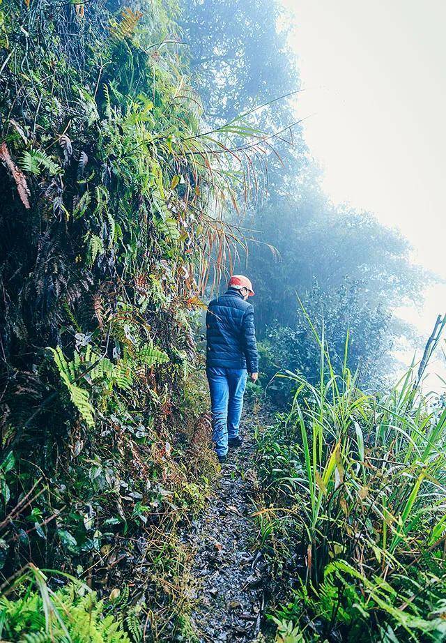摩的师傅曾到断颈岩前的茶山摘过春茶,却也从未登顶入城,所以主动带路在前,循着悬崖小径与我一同上山。热情有余,但我油钱也是给足,甚至于下山后本来想请他吃个饭喝个小酒以作感谢。结果,他坐地还钱了……加价虽然不多,但这一改口也就打翻了我的兴致观感,于是作罢。