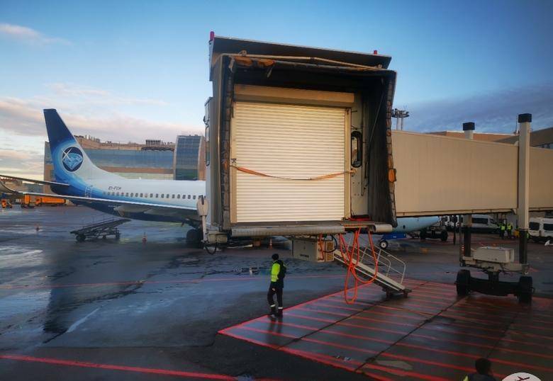 有点小意外,小飞机竟然也停靠了廊桥。因为就算满座也才78人一辆车就可以运走,廊桥登机自然是好很多。DME登机有个很好的地方就是不看护照,自行扫码登机,卫生、干净、高效。