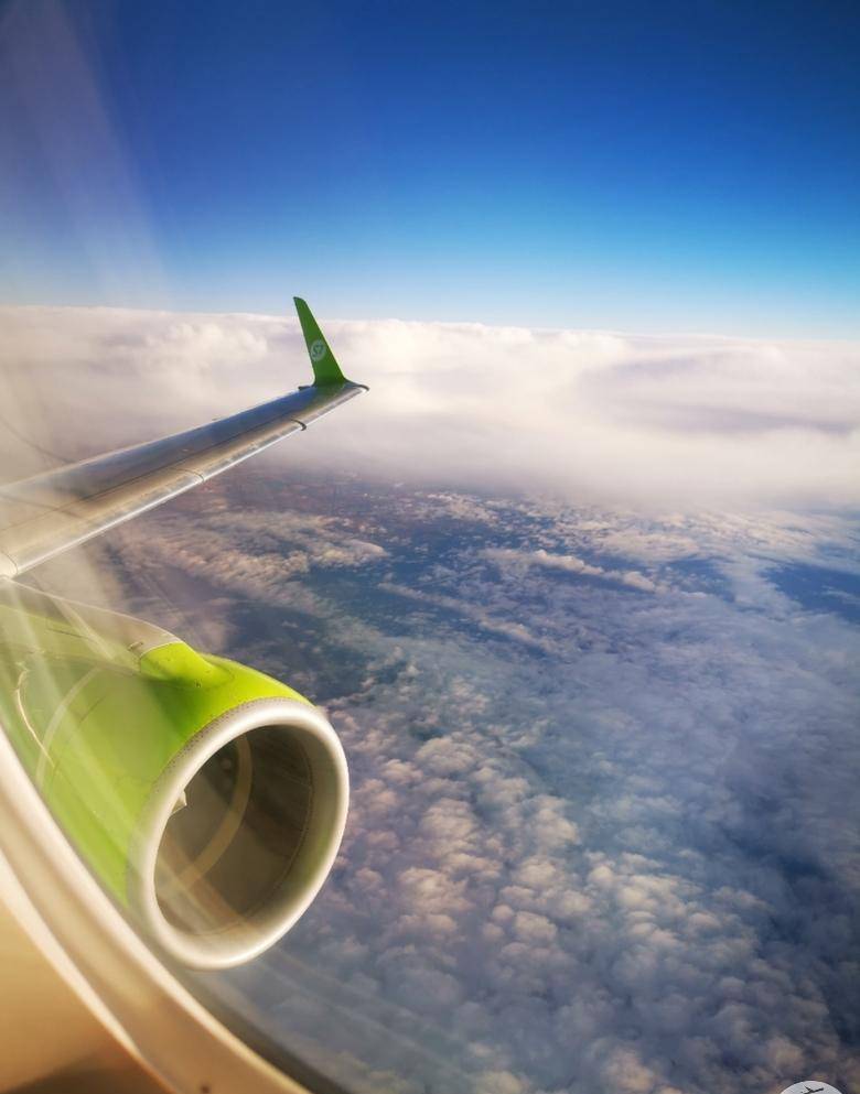 深秋的莫斯科早上,起飞的时候,刚好有太阳。起飞的瞬间看到DME真的是坐落在金色的原野之中,非常好看。50分钟的航程,依然推出餐车给乘客发水。