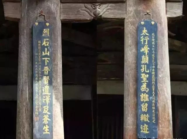 窦大夫祠内的楹联:太行峰巅,孔圣为谁留辙迹;烈士山下,普贤遗泽及苍生。其中上联指的就是这个典故。