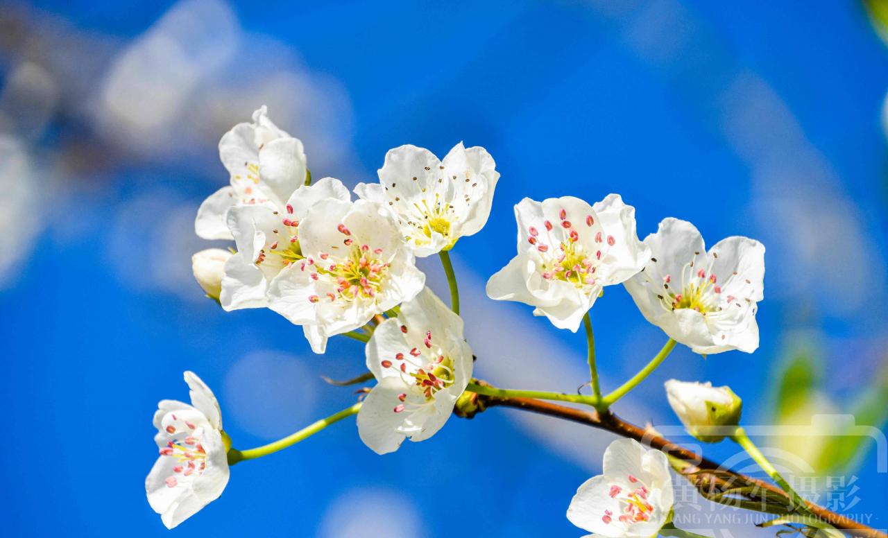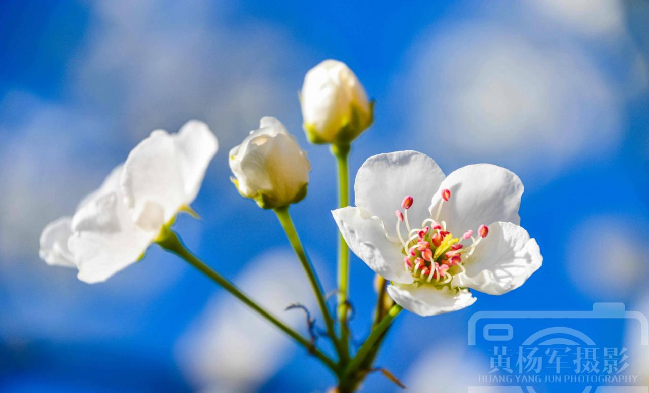 美丽的梨花是先于叶开放或同时开放,伞形总状花序;萼片5,反折或开展;花瓣5,具爪,白色稀粉红色;雄蕊15-30,花药通常深红色或紫色;花柱2-5,离生,子房2-5室,每室有2胚珠。