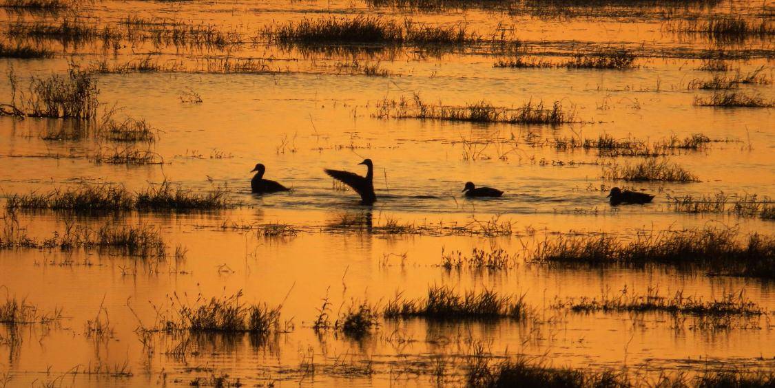 有水的地方都是灵动美丽的,那星罗棋布散布在其中的各个小湖很是具有灵性,在枯水期,草地、湿地一览无余,水中的鱼、虾、螺、蚌及各种水草也极其丰盛,在冬季时节,这里又成了候鸟的天堂,约有鸟类148种,还有很多国家保护动物。