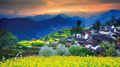 婺源油菜花旅游赏花摄影攻略:婺源油菜花与古村落相呼应,比如晒秋人家篁岭、思溪延村、江岭、深山桃源庆源。如想拍出一张有婺源特色的油菜花婚纱照,需要景物之间的配合。在婺源拍摄油菜花海婚纱照的最佳时间是细雨初停时,油菜花上挂着水珠,色彩最为鲜艳明润。