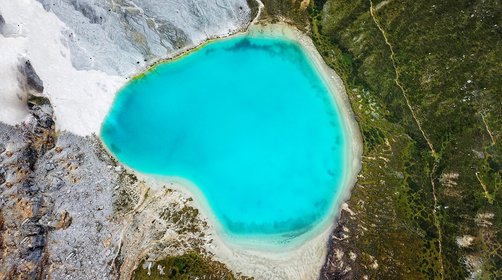 这是一个冰川湖,四面都是积雪雪山,冰川随处可以见。每年的春天,海水会变成奶白色,洁净如同琼浆玉液,因此得名。牛奶海也称”五色海“,阳光明媚的日子里,光线投射到海面上,会反射出五种色彩,充满奇幻色彩,异常美丽。